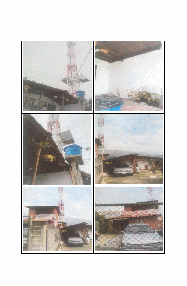 Se realizaron puntos de medición tanto en el acceso como en el interior de la vivienda del Señor Andrés Correa, ubicada en la Calle 101 Sur 45-75 y contigua a la infraestructura de telecomunicaciones objeto del estudio, correspondientes a los puntos de medición N.º 6, 9 y 10, los cuales se evidencian en las fotografías números 23, 32 y 35, cuyos resultados muestran que los valores obtenidos están muy por debajo de los límites máximos de exposición a campos electromagnéticos adoptados en la normatividad vigente, tal como se observa en la Tabla 1.