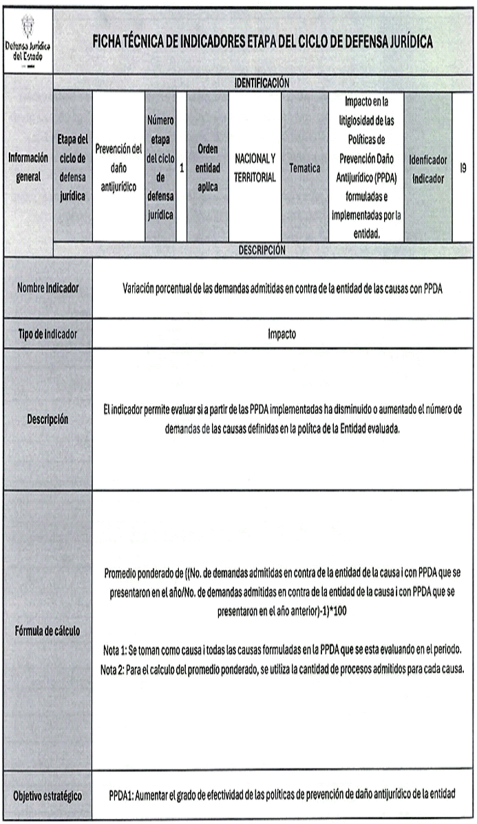 9. En próximas vigencias, podrán redefinirse los indicadores siempre y cuando exista una justificación para ello, no queden etapas del Ciclo de Defensa Jurídica del Estado sin ser evaluadas y no implique una modificación estructural del modelo.