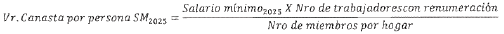 De la ecuación anterior, se despeja el "valor de la canasta por persona":