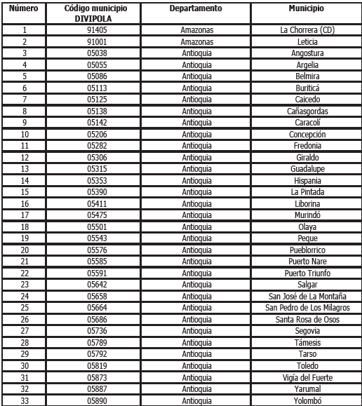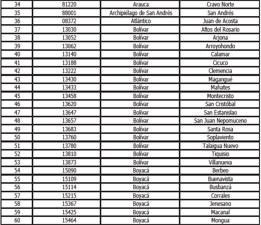2. Para el caso del Archipiélago de San Andrés se tomará la zona hotelera en lugar de la capital de departamento, comprendiendo esta zona las estaciones base ubicadas al norte de la isla de San Andrés por encima del meridiano 12o34'00". Como "resto de departamento" se entenderán las demás estaciones base ubicadas en el resto de la isla de San Andrés y en el resto del archipiélago.