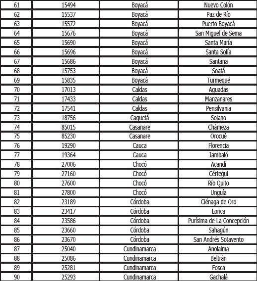 4. Localidades, municipios o comunas, de acuerdo con el ordenamiento territorial de cada municipio.