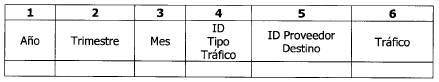 6. Tráfico: Corresponde al tráfico originado de voz móvil de acuerdo a la dasificación descrita en el numeral 4 del presente formato, expresado en minutos. Los minutos aquí reportados deberán ser redondeados en caso de que la tasación sea en minutos, mientras que si es en segundos los minutos deberán ser reales.