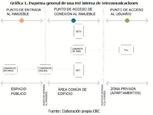 Para efectos de la interpretación y aplicación del Reglamento, se adoptan las siguientes definiciones relativas a la red interna de telecomunicaciones y a la infraestructura que la soporta, cuyos componentes fundamentales se ilustran en la Gráfica 1.