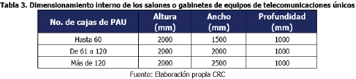 - Para el caso de inmuebles en donde se decida dotar con un salón de equipos de telecomunicaciones único, como puede darse en conjunto de unidades privadas individuales(5) (por ejemplo, casas individuales que hacen parte de un conjunto cerrado bajo el régimen de propiedad horizontal) u otros en donde el diseñador de la infraestructura soporte así lo decida, la canalización de enlace soportará los cables de las redes de alimentación desde el punto de entrada general hasta el salón de equipos de telecomunicaciones único, y desde los sistemas de captación hasta el salón de equipos de telecomunicaciones único.