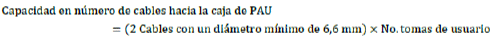 Caja de punto de acceso al usuario (caja de PAU): Elemento de la infraestructura soporte de la red interna de telecomunicaciones del inmueble. Caja dispuesta para que se realice la unión entre la canalización de dispersión y la canalización interna del usuario. Se ubica en el interior de cada domicilio de usuario. Su instalación es responsabilidad del constructor del inmueble.